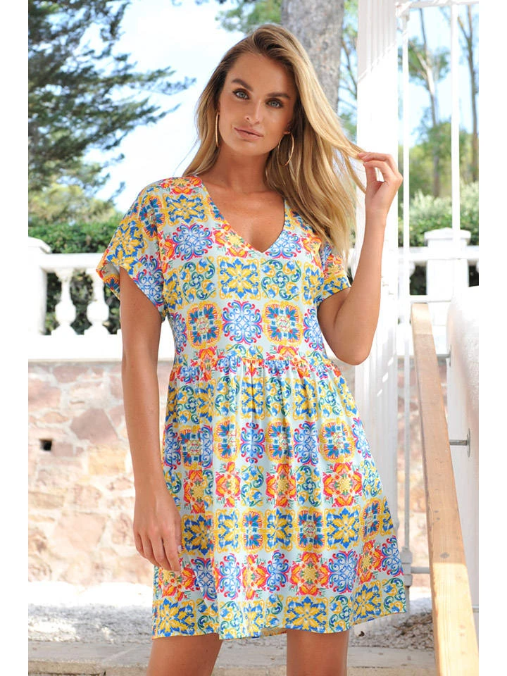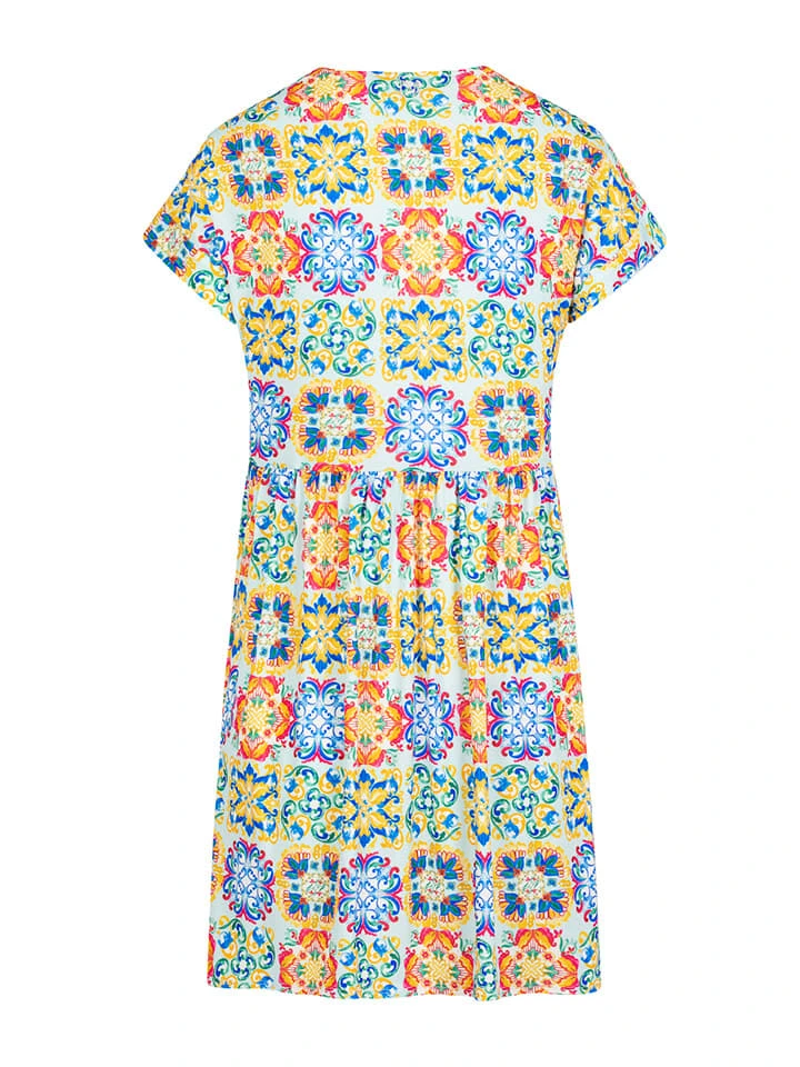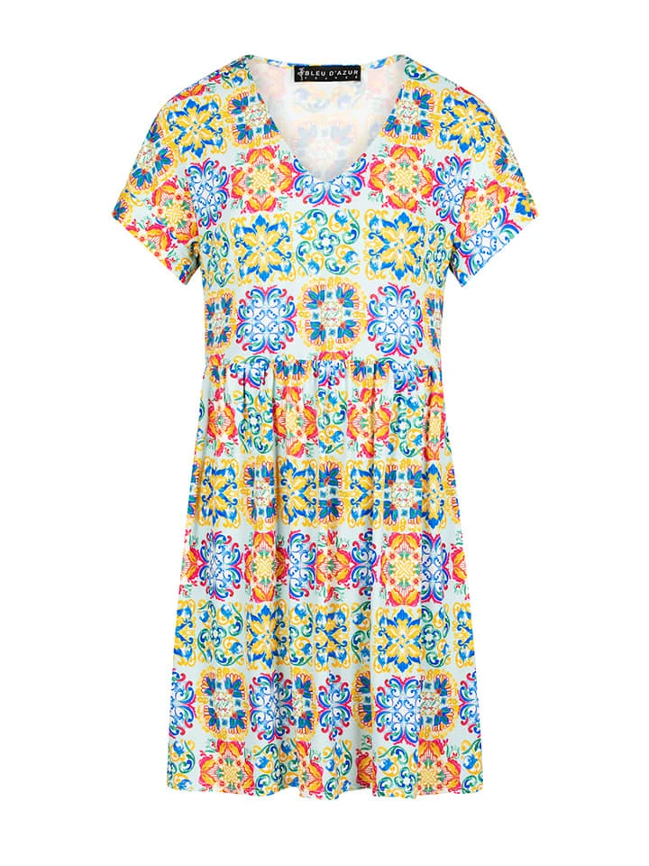 Jurk “Capri” Geel/lichtblauw