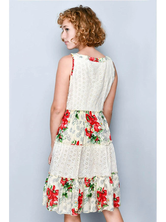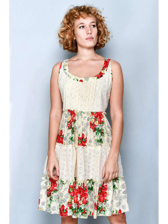 Jurk Crème/groen/rood